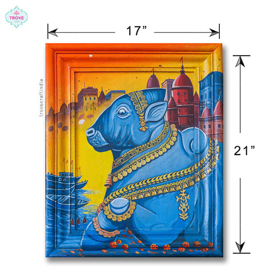 8.5" Rajasthani Floral Wooden Decor Nandi Statue