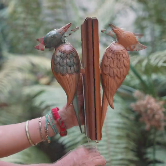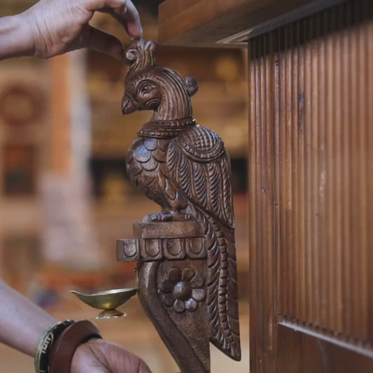 13" Chettinad Hand-Carved Parrot Light Bearer – Wall Accent