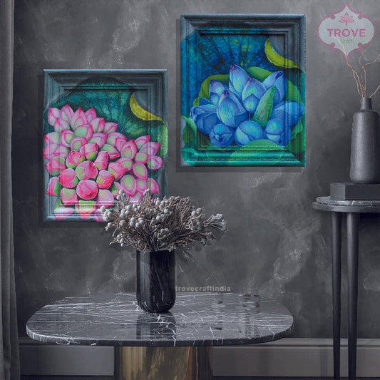 Infinity Frame 17"x 21" Contemporary painting - Lotus Buds - Fluid Frame