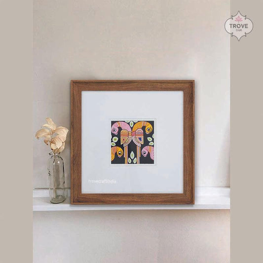 12.8" Modern Pattachitra Parrots Framed Artwork