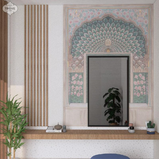 Pichwai Themed Wall Paper Designs - for Niche Focal Walls