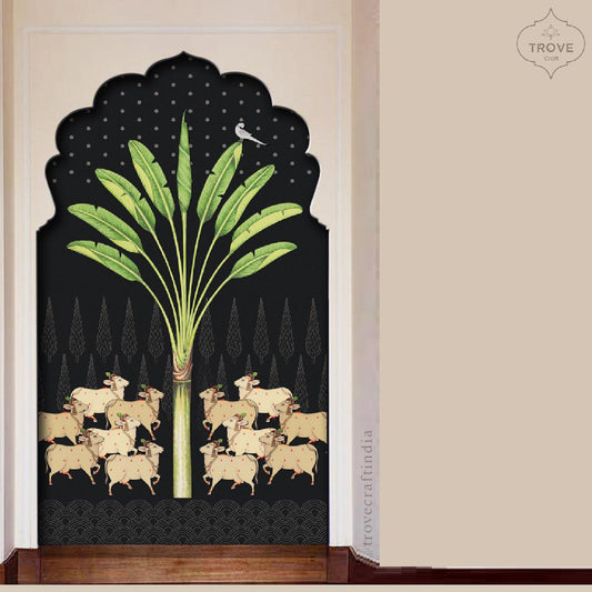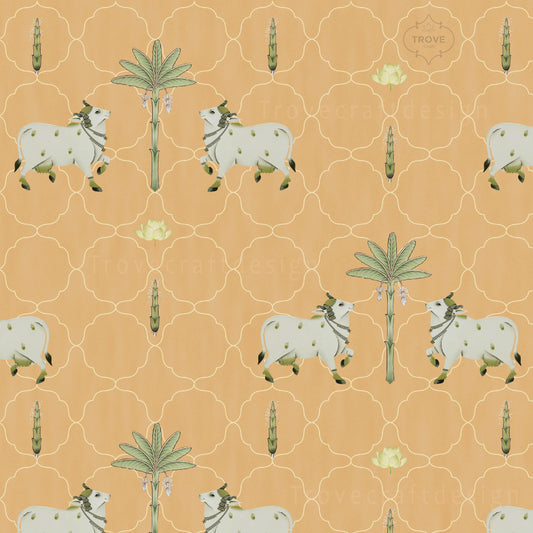 Wall Paper - Classic Pichwai Theme - Cows & Banana Pattern