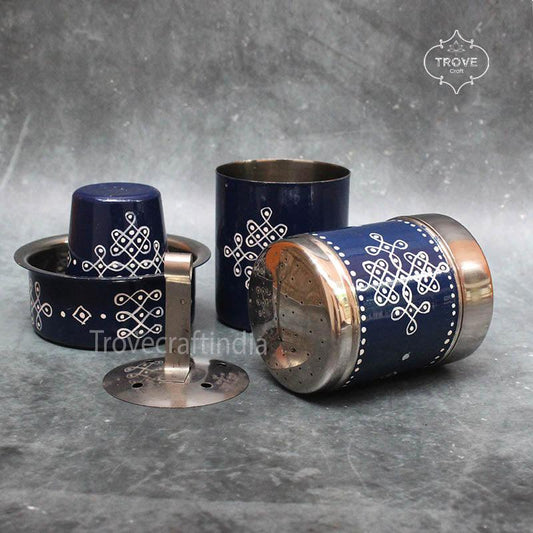 Sold outEnamel Blue Kolam Coffee Filter Set