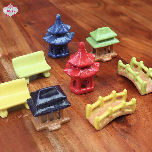 Set of of 6 - Ceramic Miniature - Japanese Garden