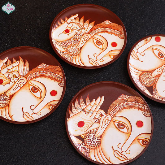 Hand-painted Teak wood Pattachitra Coasters - Set of 4
