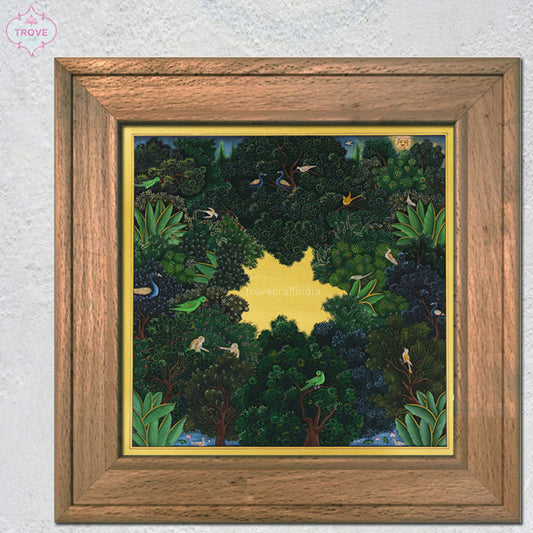 14" Flora and Fauna in the Jungle Indian Miniature Art Painting (Unframed)