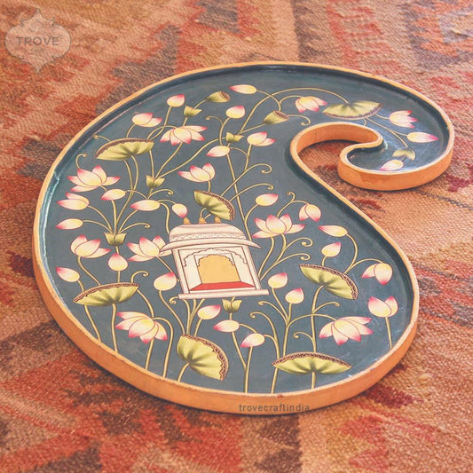 17.5 Inch - Pichwai Mandir Kamal Talai Paisley Décor Plate