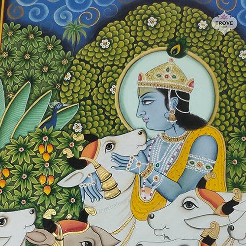 Krishna & Cows - Pichwai Painting - 24 x 36 inch