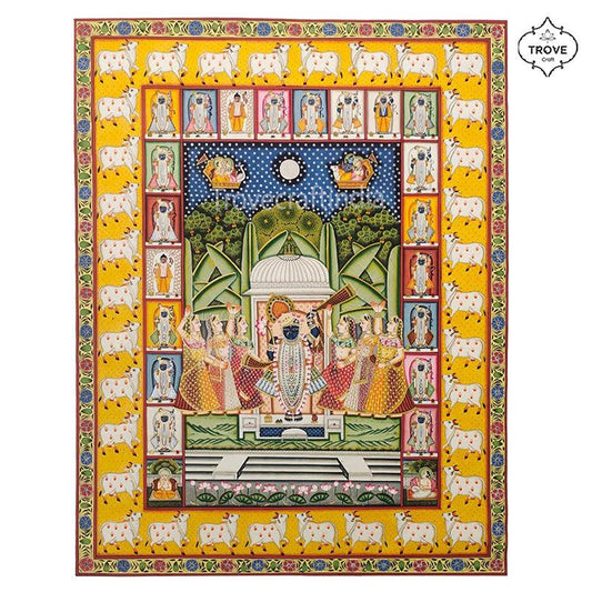 Sharath Poornima with Yellow Pichwai Cow Border 32" x 42"