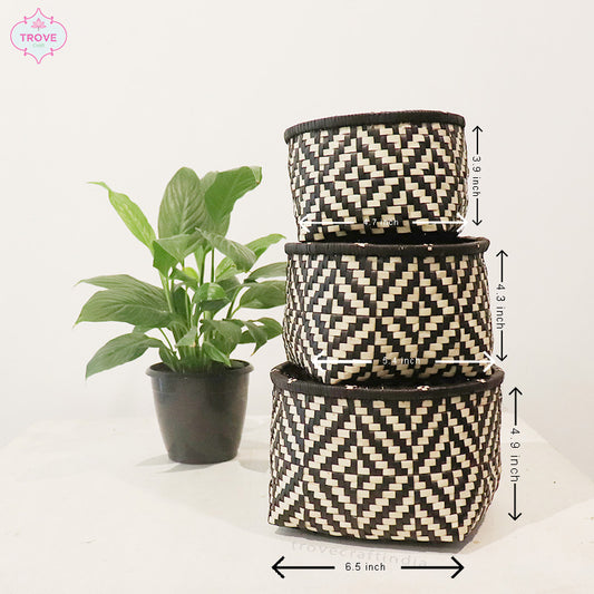 Set of 3 - Small Chettinad Handwoven Palm Leaf Baskets