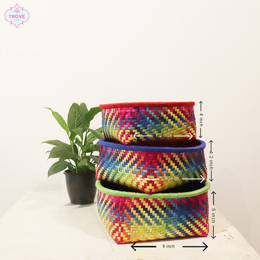 A Set of 3 - Medium Chettinad Handwoven Palm Leaf Baskets