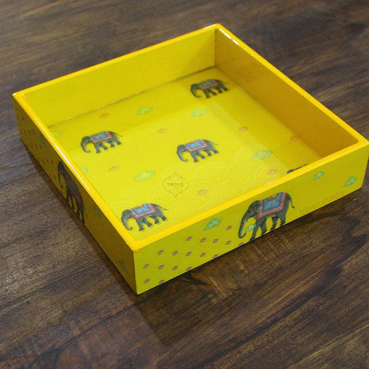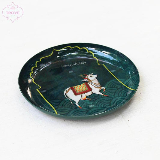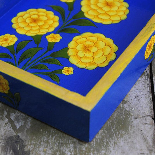 Small Serving Tray with Hand-painted Marigold on Cobalt Blue