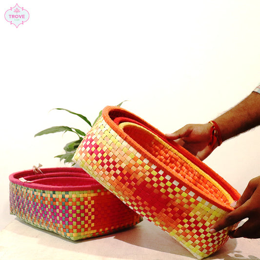 A Set of Medium Chettinad Handwoven Palm Leaf Baskets