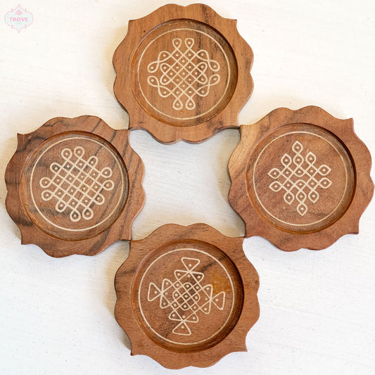 Set of 4 Arabesque Wooden Kolam Coasters