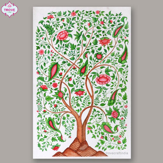 Unframed 21" x 13" Handpainted Tree of Life Chintz Style