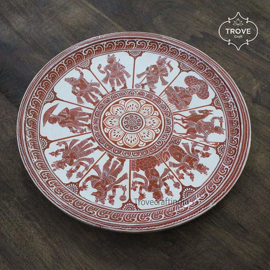 12" Dashavatar in Geru Colours Pattachitra Wall Decor Plate
