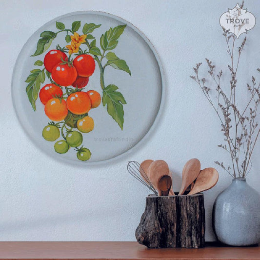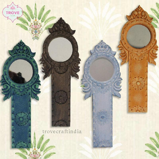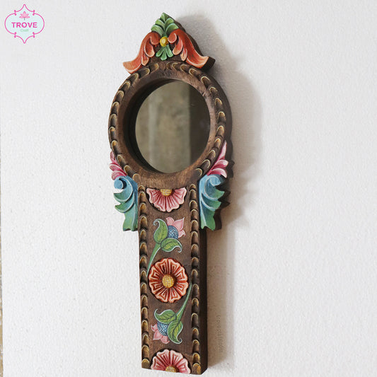 17" Handpainted & Carved Coconut Grater-Style Wooden Mirror Frame