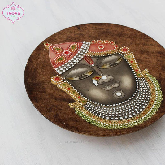 8" Hand-painted Pichwai Srinathji Relief Wooden Door Knob / Plate