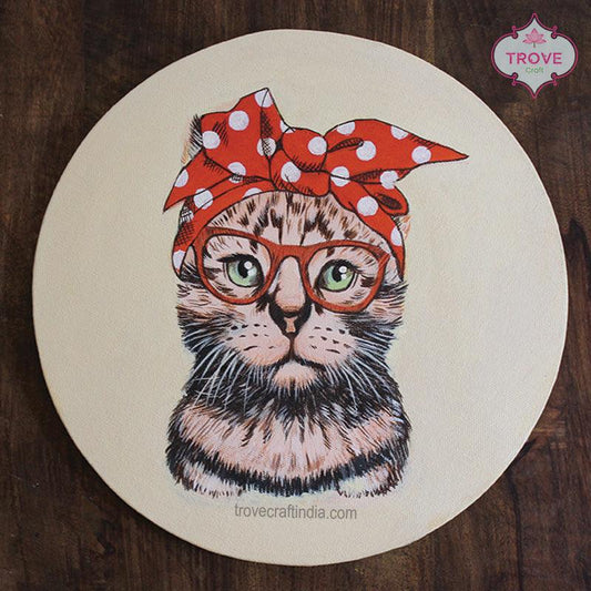12" Retro Cat Contemporary Acrylic Painting on Canvas