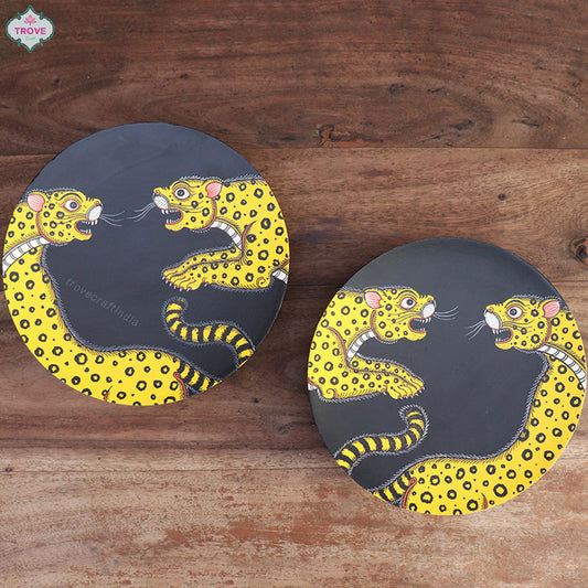 Set of 2 Hand-painted Door Knob / Wall Décor - Pattachitra Leopard