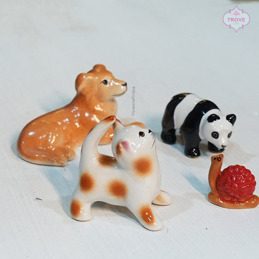 Set of 4 miniature ceramic cute animals