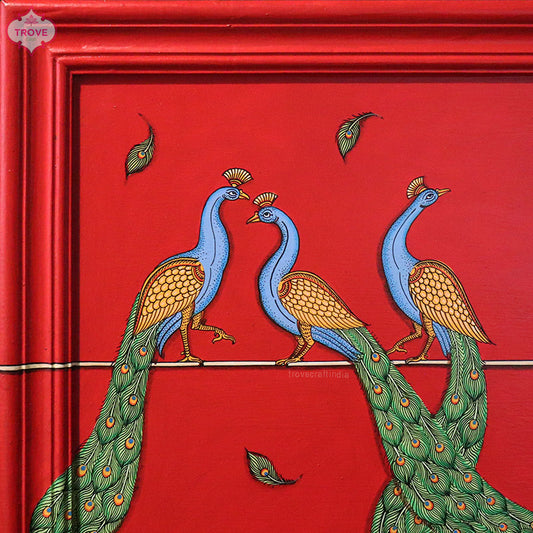 15" Roosting Peacocks Modern Pattachitra Art Infinity Frame