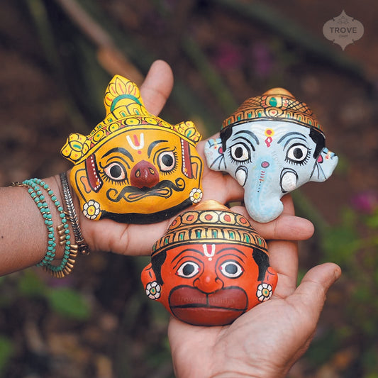 2.5" Ganesha, Hanuman and Garuda Mini Cherial Masks (set of 3)