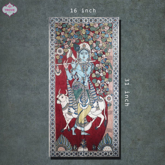 Radha Krishna Painting Hand-painted Kalamkari on Cotton - UNFRAMED