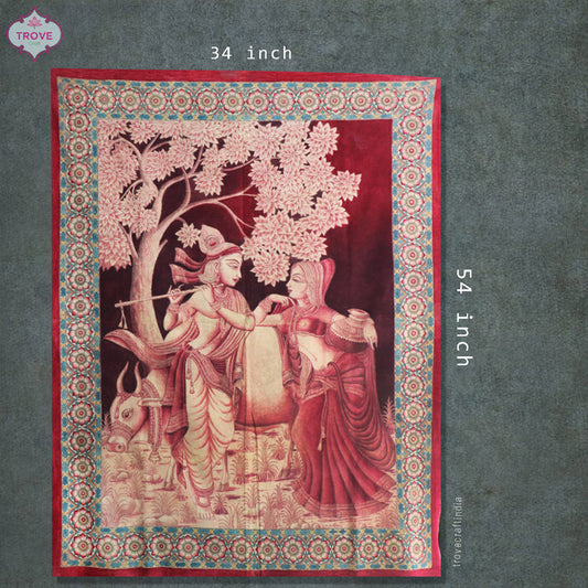 Radha Krishna Hanpainted Kalamkari on Cotton - UNFRAMED