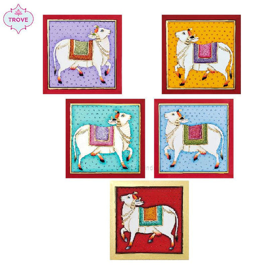 Unframed 12" x 12" White Cow with Chadar Pichwai Painting