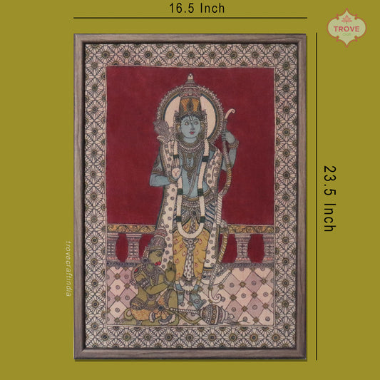 FRAMED - Lord Ram & Hanuman Hand-painted Kalamkari on Cotton