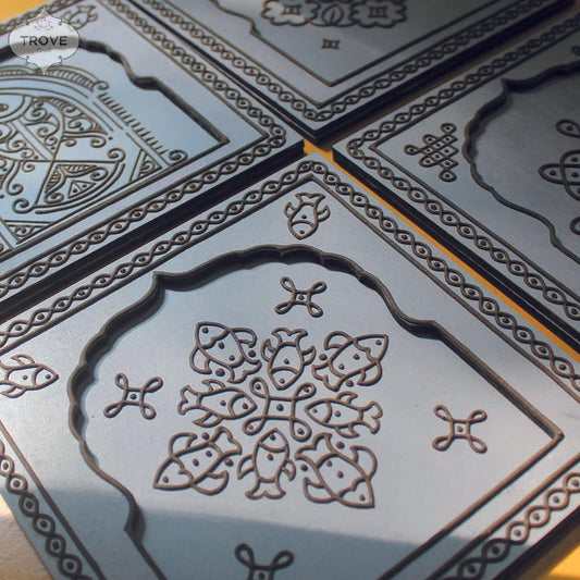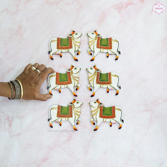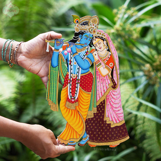 This collection of hand painted wood cutouts and other products are mainly painted in Pichwai style, in a range of colours and in sets of different motifs. They can be arranged in any way you choose, and can easily be integrated into your existing decor.