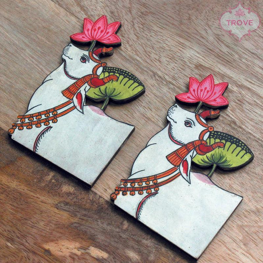 Set of 2 pichwai cow MDF cutouts in white - Back facing
