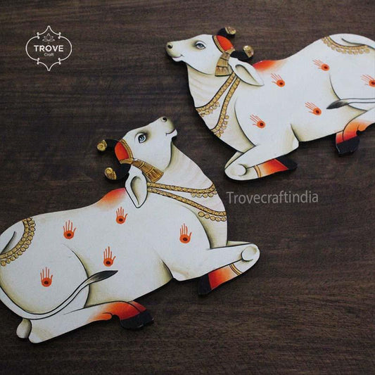 Set of 2 pichwai cow MDF cutouts in white - Sitting