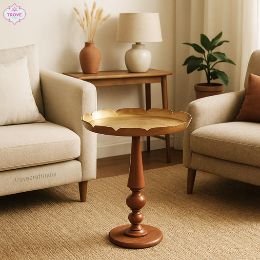 16" x 19" Teak Wood & Lotus Bell Metal ( Brass ) Peg table