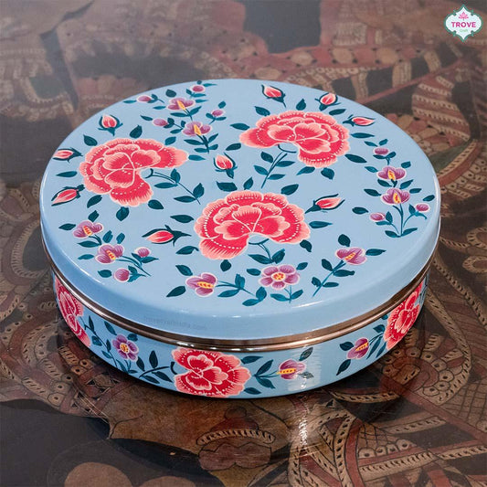 8" Hand-Painted Enamel Floral Steel Spice Box