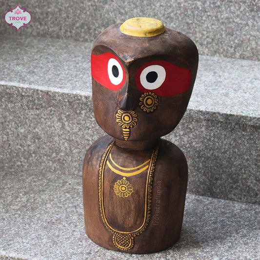 13" Carved Lord Jagannath Minimalist Wooden Figurine