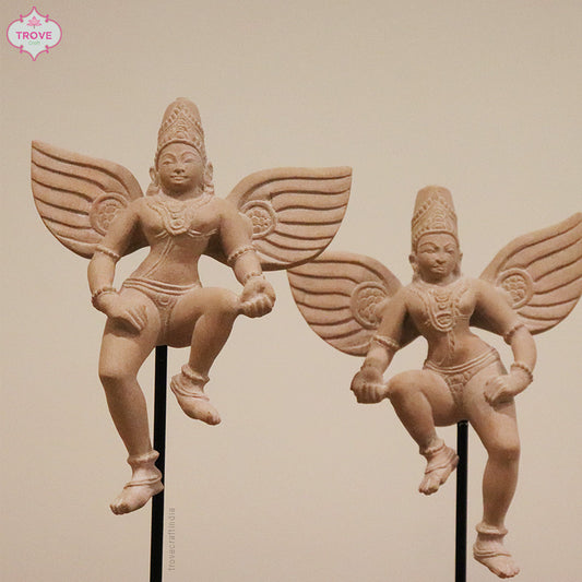 8" Gandharva Angels Sandstone Figurines Table Decor (set of 2)