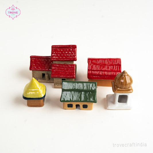 Set of of 5 - Ceramic Miniature - The Village huts & temple