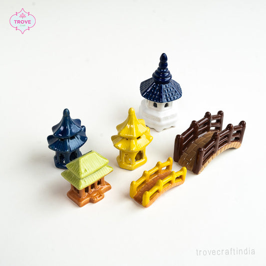 Set of of 6 - Ceramic Miniature - Japanese Garden