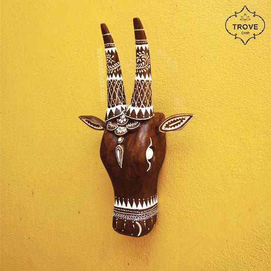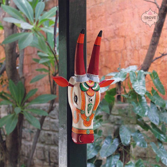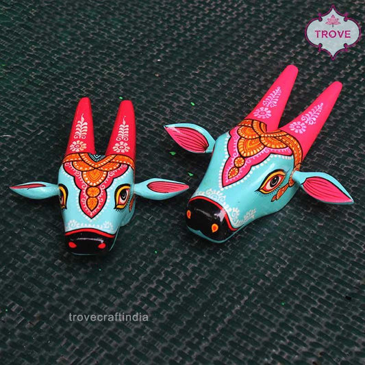 5 & 6 Inch - Mini Hand Painted Pattachitra Wooden Cow Head