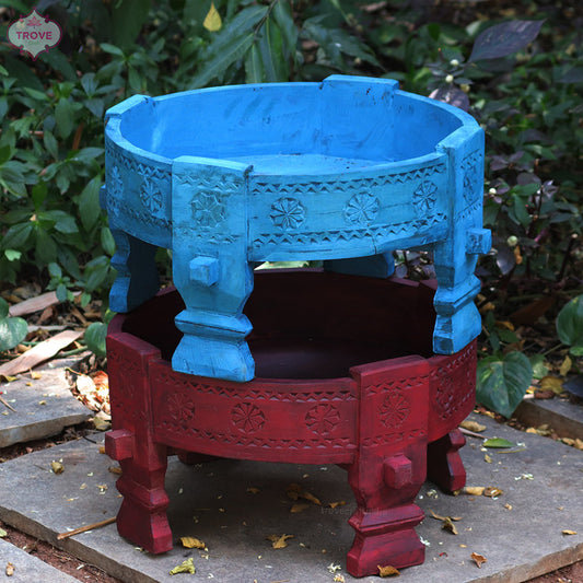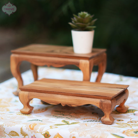 16" x 9" Vintage Style Small Wooden Carved Storage Table