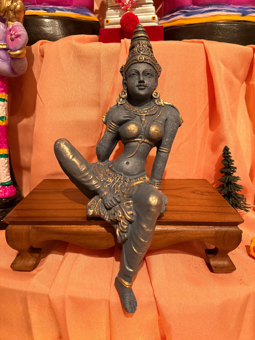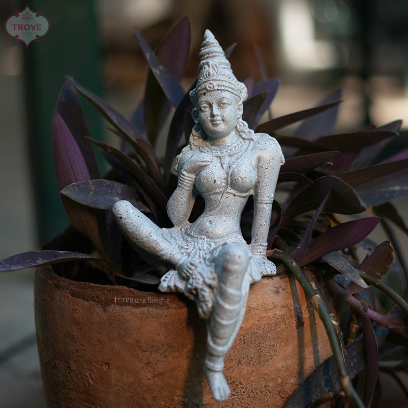 11-inch décor figurine of the goddess Parvathy in a seated pose, in the Chola style, and in three colour variants.