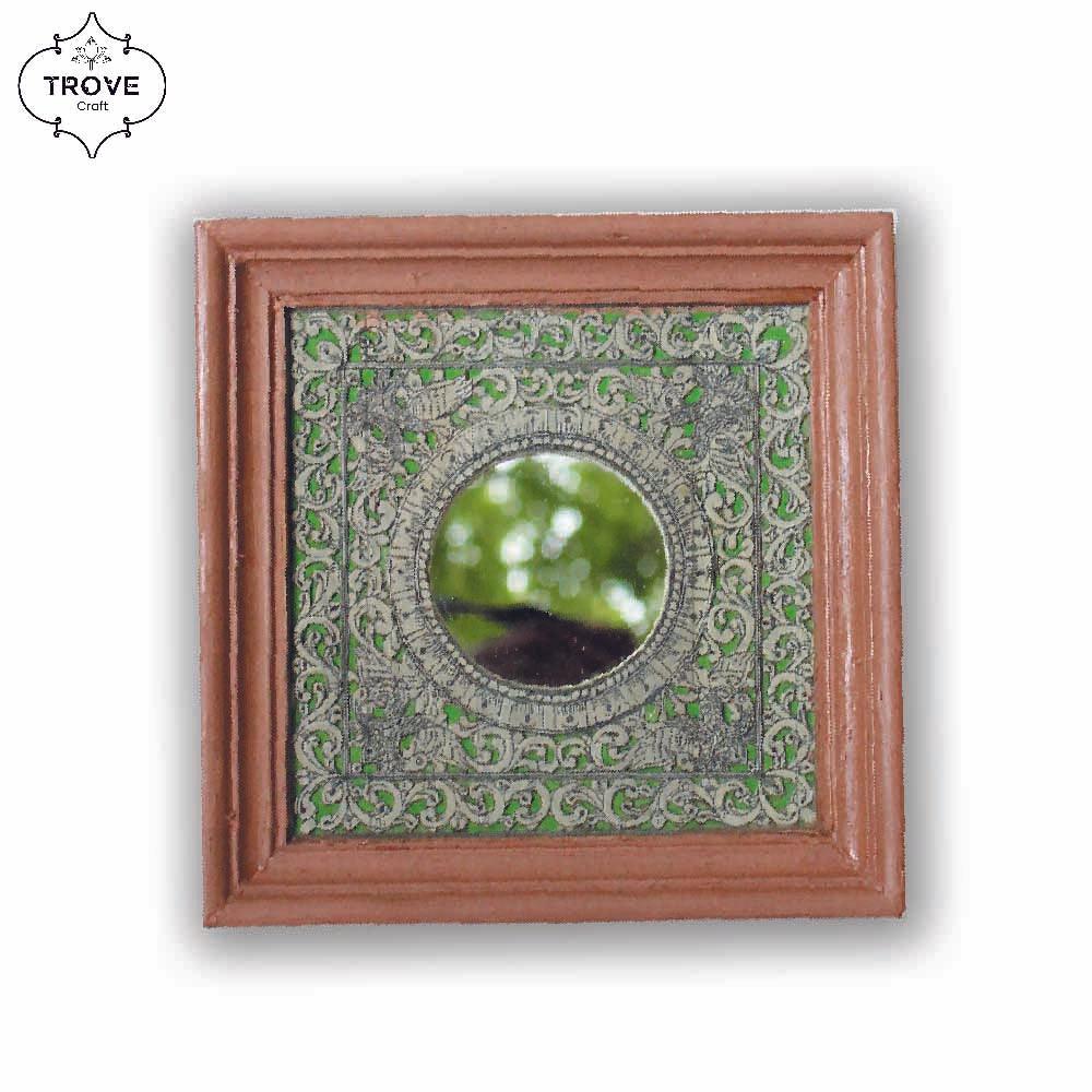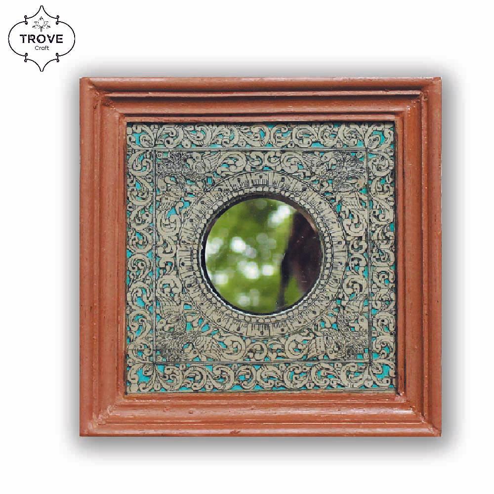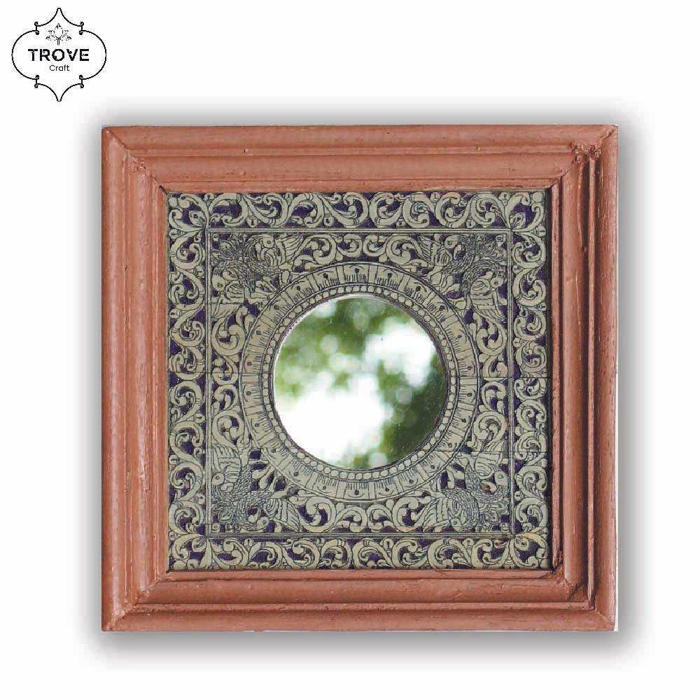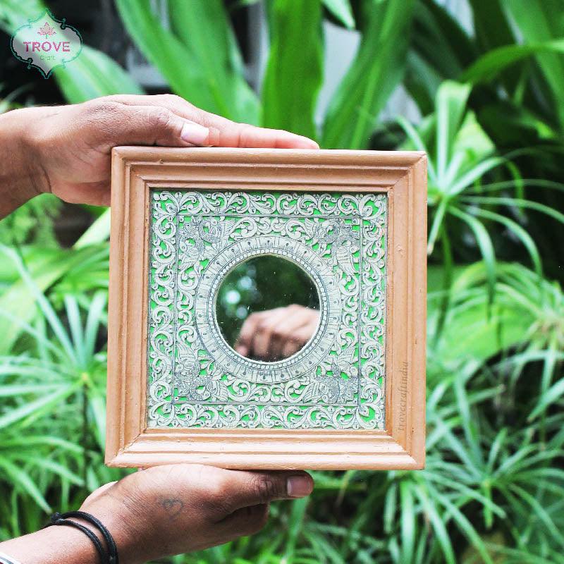 7 Inch Hand-Etched Palm Leaf Mirror Wall Decor Frames - Talapattachitra