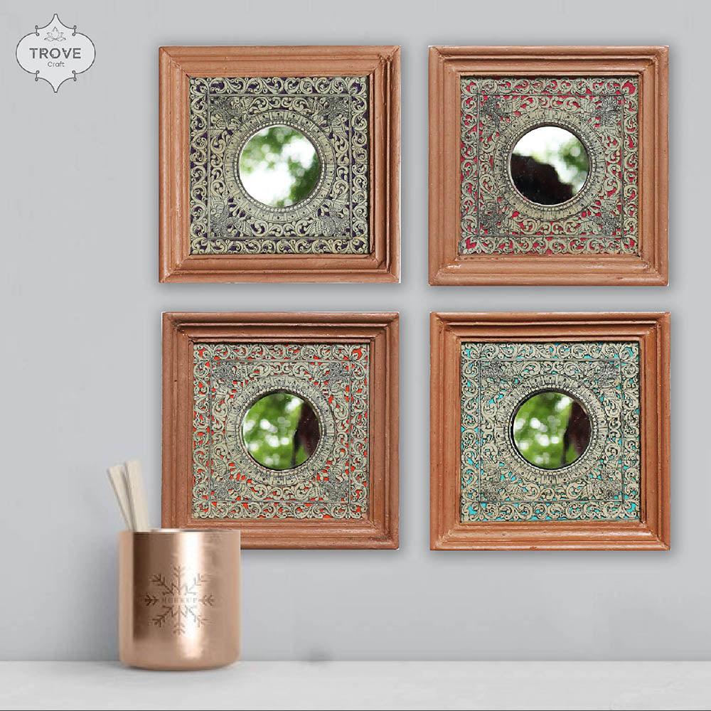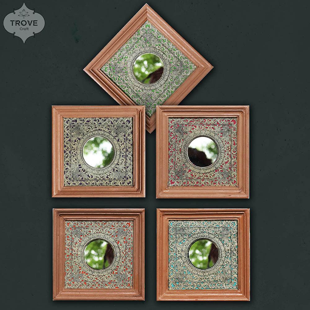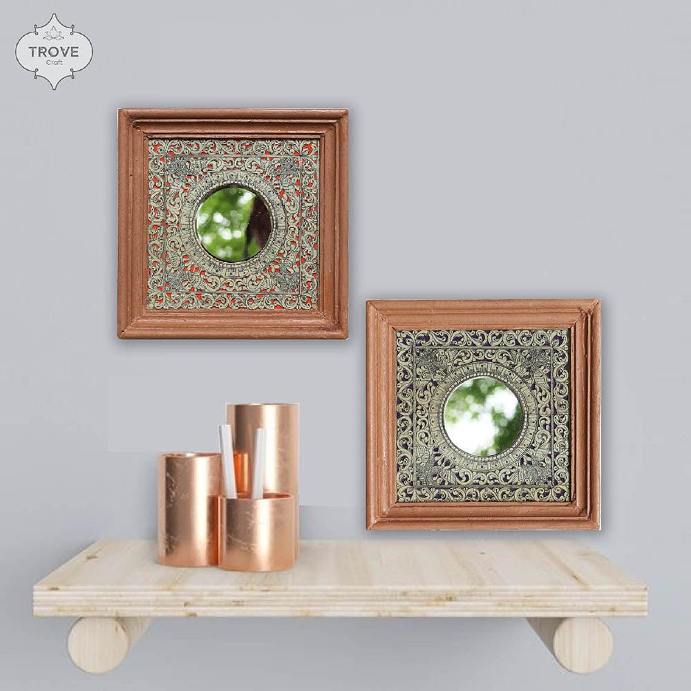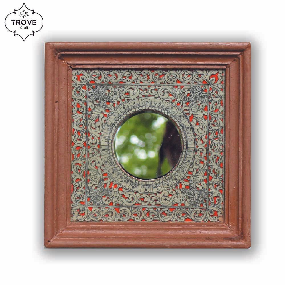 7 Inch Hand-Etched Palm Leaf Mirror Wall Decor Frames - Talapattachitra