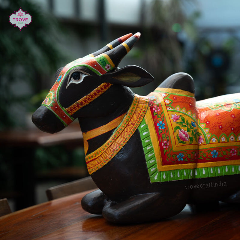 This wooden Nandi Statue, a symbol of divine was carefully handcrafted by skilled artists. You can use this statue for making a captivating centerpiece in your home, office, or sacred space. Its elegant design and serene expression evoke a sense of tranquility and spirituality, creating an atmosphere of calm and introspection.